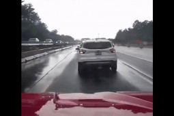 Dòng xe đang ùn tắc bất ngờ tài xế đánh lái sang trái, cú đánh lái này giúp chủ xe tránh được vụ tai nạn liên hoàn sau đó.