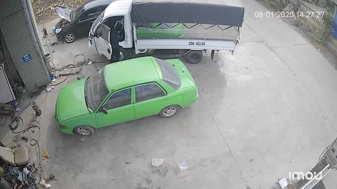 Camera an ninh ghi lại cảnh một người đàn ông đang đề nổ máy ô tô để kiểm tra sau khi hoàn thành việc sửa chữa. Tuy nhiên, chiếc ô tô vẫn cài số, khiến xe bất ngờ lao về phía trước và kéo theo người đàn ông. Tình huống diễn ra quá nhanh khiến người đàn ông không kịp phản ứng, bị kẹp giữa ô tô và bức tường. Ngay sau đó, người trong nhà đã chạy ra để hỗ trợ người đàn ông thoát khỏi tình huống nguy hiểm trên.