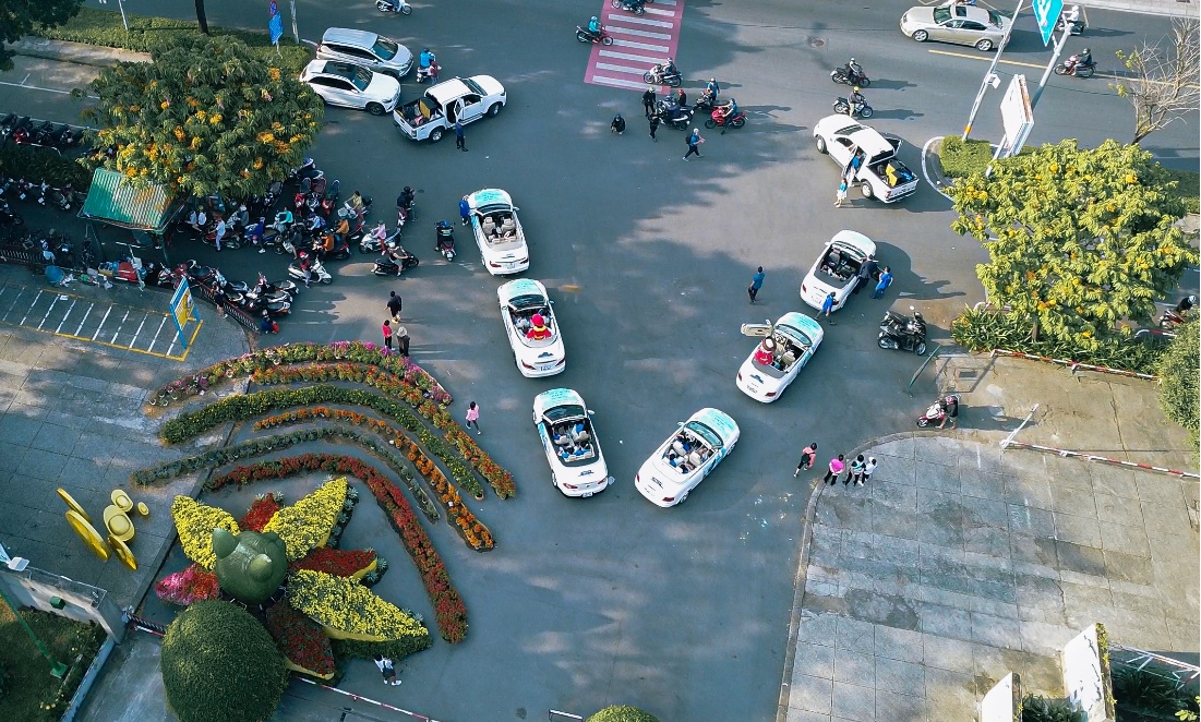 Đoàn xe mui trần Vietmap xuất quân và đi qua các cung đường đẹp nhất của Thành phố Hồ Chí Minh. Ảnh: Vietmap