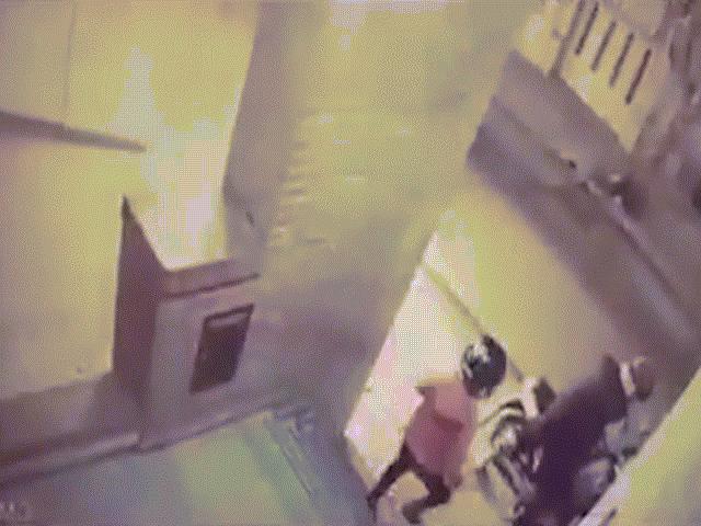 Dù bị một tên trong nhóm cướp đẩy ngã, cậu bé không hề sợ hãi vẫn chạy ra giúp mẹ ngăn những kẻ lạ mặt.