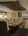 Phi cơ riêng siêu xa xỉ Boeing 787-9 Dreamliner là dự án của công ty VIP Completions Ltd., thiết kế theo yêu cầu của một khách hàng. Phòng khách sử dụng kết hợp nhiều tông màu lạnh như đen, trắng, xanh dương nhằm tạo một không gian hiện đại, sang trọng.