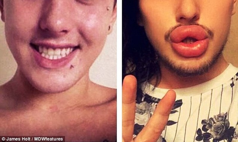 James Holt 24 tuổi, sống tại Manchester (Anh) luôn lo lắng về vẻ bề ngoài của mình, nhất là đôi môi mỏng. Holt đã tìm đến thẩm mỹ viện bơm môi lần đầu tiên vào năm 16 tuổi và liên tục bơm lại mỗi 2-3 tháng, tiêu tốn khoảng 14.000 Euro cho đôi môi.