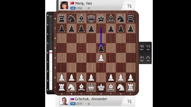 Với một thế phòng thủ vững chắc, kỳ thủ Trung Quốc đã đưa cao thủ người Nga vào thế đổi quân liên hoàn. Ở nước 49 khi hai bên còn số quân giống hệt nhau, họ đã chấp nhận một kết quả hòa. Sau 2 ván toàn hòa trước đó, rõ ràng Grischuk muốn có một chiến thắng nhưng anh đã bị đàn em tới từ Trung Quốc "tát" cho một cái thật đau.
