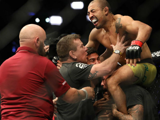 Aldo liên tiếp tung đòn vào chỗ hiểm của Stephens buộc trọng tài dừng trận đấu.