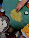 Cốm được làm từ nhiều loại lúa khác nhau nhưng ngon nhất vẫn là lúa nếp cái hoa vàng trong cả hai mùa lúa chiêm và lúa mùa. Thông thường, người ta thường hay chọn lúa mùa (từ khoảng rằm tháng 7 âm lịch đến hết tháng 9 âm lịch) để làm cốm. Cốm vụ mùa vào thời điểm tiết trời thu se lạnh. Đây cũng chính là vụ mà vị cốm ngọt thanh, thơm và ngon hơn.