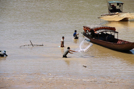 Đi dọc sông Đà những ngày này mới thấy sự nhộn nhịp của mùa bắt cá sặc bùn. Bắt đầu từ xã Tường Phong đi Tân Phong, Bắc Phong, Đá Đỏ… (huyện Phù Yên), chỗ nào cũng tấp nập thuyền, bè, đông nghịt người chờ sẵn từ sáng tới khuya để bắt cá.