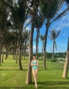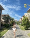 Trong bộ bikini một mảnh màu xanh ôm sát, khoe trọn vóc dáng thon gọn và làn da trắng mịn, Mai Hoa khiến mọi ánh nhìn đều đổ dồn về phía mình.