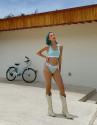 "Quý cô trendy" Quỳnh Anh Shyn diện bikini đi boots chạy hớt hải trên cồn cát từng là hình ảnh gây sốt trên các trang mạng xã hội. Thực tế, đây là xu hướng đã được các ngôi sao quốc tế Bella Hadid, Blanca Blanco,... lăng xê từ nhiều năm về trước.