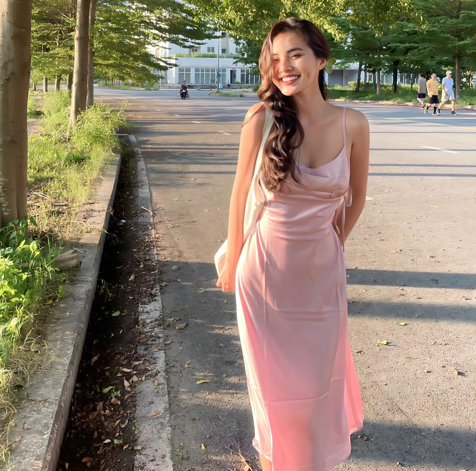 Hoàng Kim chuộng mặc váy lụa hai dây khoe dáng đẹp nền nã. Song, kiểu váy này có một nhược điểm là dễ bị nhăn trong quá trình bạn hoạt động, gây mất thẩm mỹ, thế nên trong quá trình đi, đứng, ngồi bạn cần chú trọng để hạn chế xảy ra tình trạng váy bị gấp hoặc nhăn.