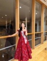 Kiều Duy hóa nàng công chúa gợi cảm. Cô diện chiếc váy bồng bềnh trễ vai tông đỏ. Ảnh: FB Kiều Duy.