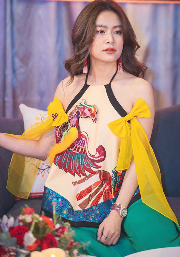 Lương Thùy Linh cũng không đứng ngoài xu hướng trang phục cổ yếm đã và vẫn đang hot.