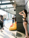 Ảnh hậu trường buổi chụp hình áo tắm của "Quỳnh búp bê" Phương Oanh được khen gợi cảm hơn cả ảnh sản phẩm cuối cùng dù không qua chỉnh sửa, chỉ là ảnh chụp lén.
