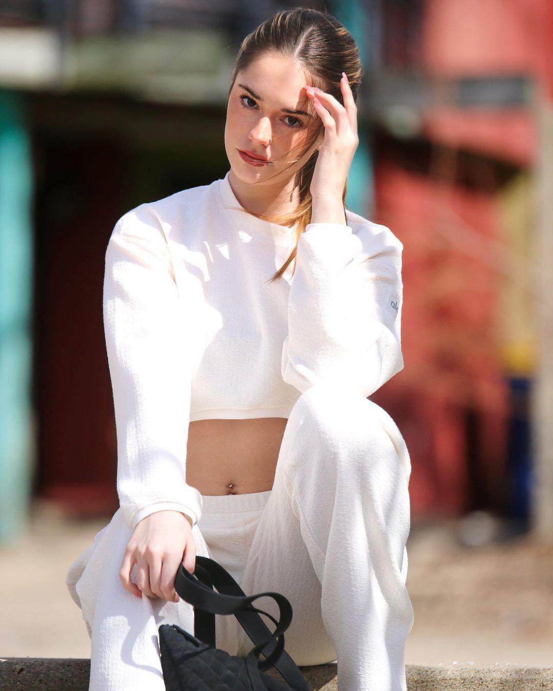 Mới đây trên trang Instagram cá nhân gần 1 triệu người theo dõi, cô gây chú ý khi đăng tải loạt ảnh diện sports bra phối cùng chân váy xếp ly màu trắng. Trang phục giúp người đẹp tôn được vòng eo thon gọn cùng vóc dáng săn chắc, khỏe khoắn. Người hâm mộ cũng nhanh chóng nhận ra thời gian gần đây Makenzie Rain thường xuyên diện bra phối cùng quần thun ngắn, jeans short,... nhiều màu.