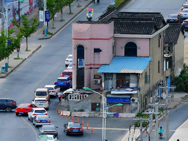 Căn nhà nằm chắn trên tuyến đường có nhiều làn xe 14 năm khiến nhiều người chú ý.