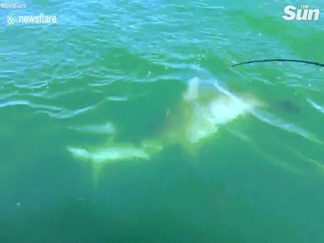 Người dân nhìn thấy hai con cá mập hổ và một cá mập trắng lớn.