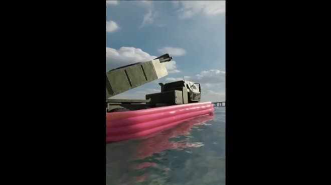 Theo báo Mỹ Newsweek, video hệ thống HIMARS nổi trên một chiếc bè màu hồng, chĩa ống phóng rocket về phía cầu Kerch là không có thật.