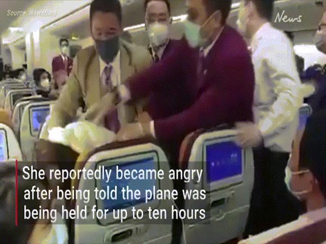 Đoạn video quay cảnh thành viên phi hành đoàn trên máy bay của hãng hàng không Thai Airways khống chế một phụ nữ làm loạn...