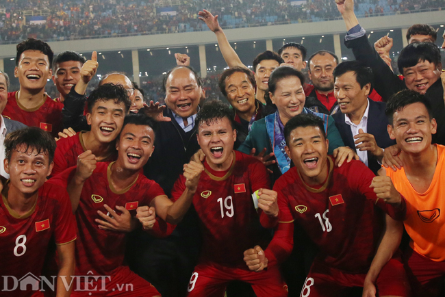Sau khi tiếng còi mãn cuộc vang lên, Thủ tướng Chính phủ Nguyễn Xuân Phúc, Chủ tịch Quốc hội Nguyễn Thị Kim Ngân đã xuống sân Mỹ Đình ăn mừng chiến thắng cùng toàn đội U23 Việt Nam.