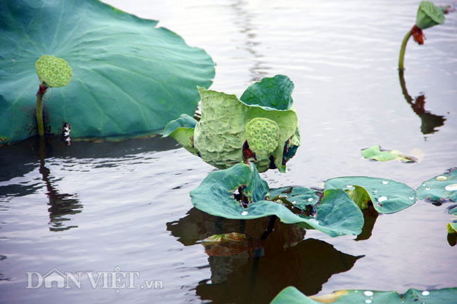 Anh Hạnh vừa cười vừa nói với chúng tôi về độ "khủng" của nó: "Sen Quan Âm trong đầm mình to lắm, khéo to bằng cả cái vàng của chiếc mũ cối của các chú bộ đội hay dùng".