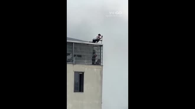 Góc video mới do người dân ghi lại cho thấy rõ hơn khoảnh khắc 7 người mắc kẹt trong vụcháy ở Lĩnh Nam được giải cứu bằng chiếc thang bắc qua hai căn nhà trên tầng cao.