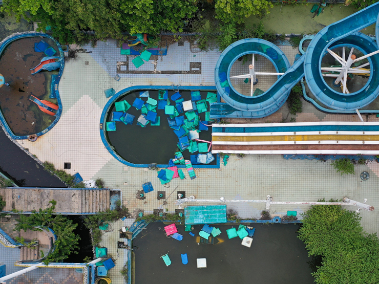 Công viên nước Đại Thế Giới, địa điểm vui chơi nổi tiếng ở TP.HCM trở nên hoang tàn, xuống cấp sau hơn 2 năm đóng cửa vì dịch COVID-19.