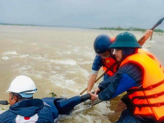Lực lượng chức năng cùng người dân địa phương đã kịp thời cứu hộ hai mẹ con bị nước lũ cuốn khi đi qua đoạn đường bị ngập sâu.