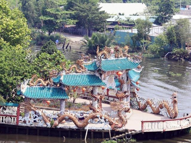Giữa bốn bề sông nước, ngôi miếu có hơn 100 con rồng lớn nhỏ được trang trí tinh xảo với nhiều hình dáng khác nhau ở...