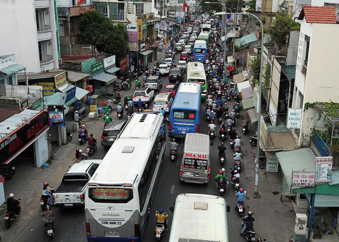 Đường Xô Viết Nghệ Tĩnh (quận Bình Thạnh) càng vào giờ cao điểm, các phương tiện đổ về đây càng nhiều để ra bến xe miền Đông.
