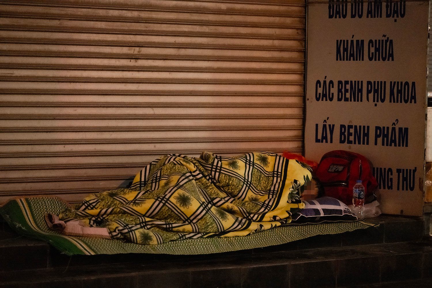 Những bậc thềm trên phố Triệu Quốc Đạt (gần bệnh viện K) cũng là nơi nhiều người chọn làm chỗ ngủ.