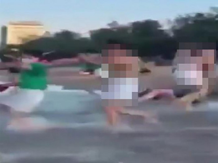 Nhóm nữ du khách lột áo ngực chơi team building trên bãi biển Cửa Lò (Ảnh cắt từ clip)