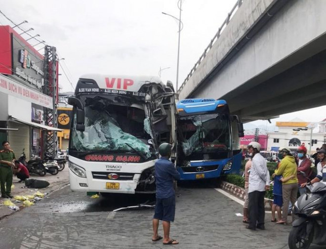 Hai xe khách va chạm tại chân cầu vượt ngã ba Thành, huyện Diên Khánh, tỉnh Khánh Hòa khiến một hành khách thiệt mạng