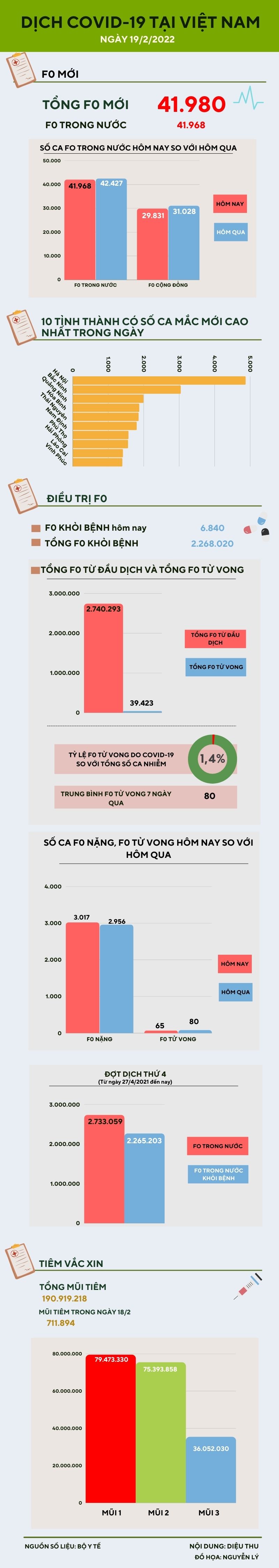 Ngày 19/2: Thêm 41.968 ca nhiễm COVID-19 trong nước