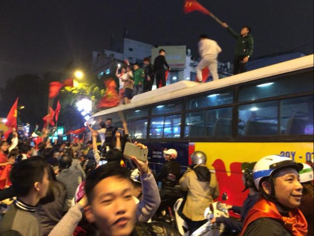 “Sau chiến thắng trước Malaysia, đám đông người đã tụ tập bên ngoài sân Mỹ Đình để ăn mừng chiến thắng. Họ nhảy múa, ca hát rất vui vẻ. Những tiếng ồn từ còi xe hơi và xe máy là một phần của bản nhạc vui tai này”, tờ Hankyoreh viết.