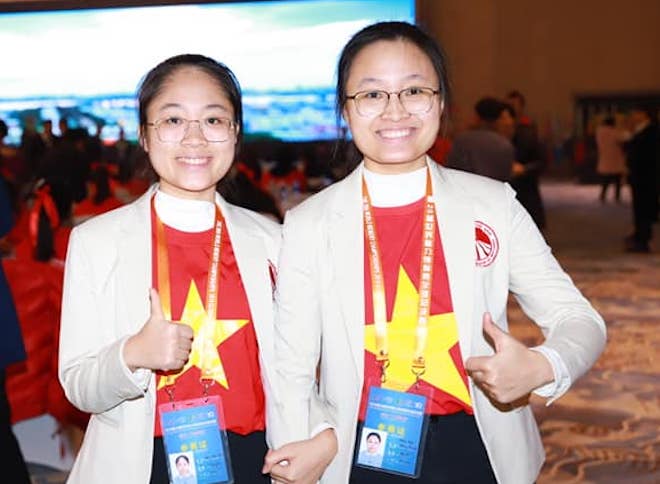 Đặng Ngọc Phương Trinh (phải) và chị gái là Đặng Thu Hiền đã đại diện Việt Nam tham gia cuộc thi Siêu trí nhớ Thế giới lần 30.