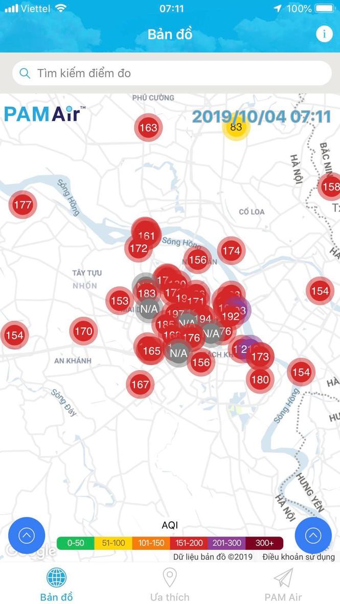 Tại trạm đo của Đại sứ quán Mỹ, chỉ số AQI tại điểm đo Phú Thượng lên tới 194. Theo ghi nhận của hệ thống PAMAir, hầu hết các điểm đo ở Hà Nội có ngưỡng đỏ (chỉ số AQI từ 150-200)-ngưỡng ảnh hưởng đến sức khỏe tất cả mọi người. Cá biệt tại hai điểm đo Trần Quang Khải (Hoàn Kiếm), chỉ số AQI lên tới 203 và điểm đo Time City lên ngưỡng tím – rất có hại cho sức khỏe mọi người. Các điểm đo của Sở Tài Nguyên và Môi trường Hà Nội chưa cập nhật các số liệu hiện thời.
