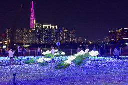 Hàng trăm nghìn bóng đèn LED trang trí tại Công viên bến Bạch Đằng, quận 1 tạo nên ánh sáng lung linh, huyền ảo thu hút người dân, du khách đến vui chơi, chụp ảnh.