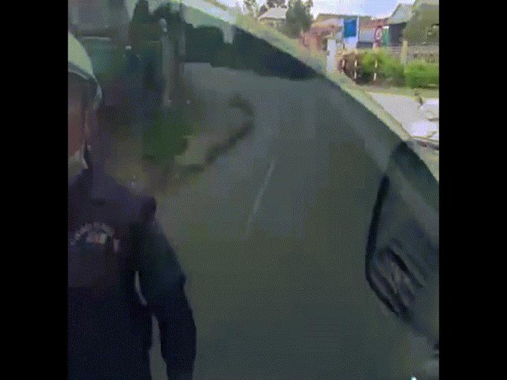 Người cản trở xe cứu thương không chỉ chạy lạng lách trước đầu xe, mà còn xuống xe chửi bới tài xế, rồi dùng tay đập cửa kính xe.