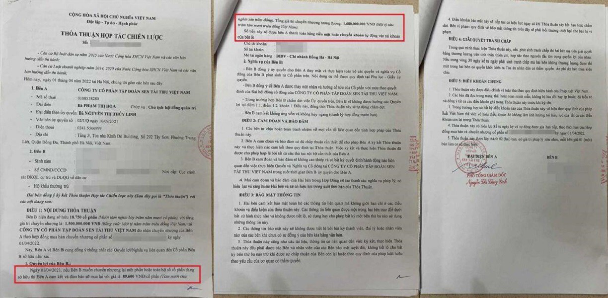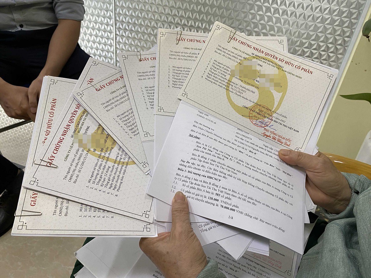 Tương tự, bà Trần Thị Hoà (75 tuổi, ở Hoàn Kiếm, Hà Nội) sở hữu 6 hợp đồng mua cổ phần trị giá 1,75 tỉ đồng tại Tập đoàn Sen Tài Thu. Khoản tiền đầu tư vốn trước đây là tiền tiết kiệm gửi tại một ngân hàng để dưỡng già, sau đó được nhân viên ngân hàng mời chào giới thiệu chuyển qua mua cổ phần tại Tập đoàn Sen Tài Thu.