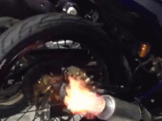 Yamaha Exciter độ pô khạc ra lửa đỏ rực được dân mạng cho là có thể vừa đi du lịch vừa nướng thịt được luôn.