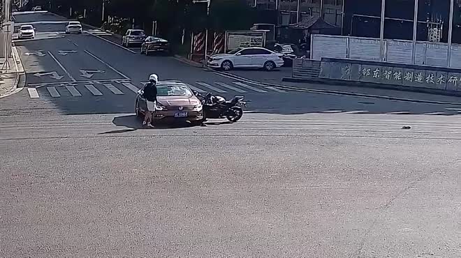 Clip: Đâm trúng ô tô, thanh niên điều khiển mô tô có màn "hạ cánh" khó tin