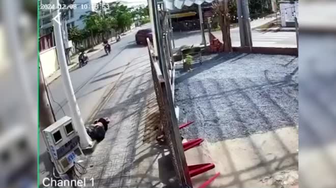 Clip: Tránh ô tô chuyển hướng, xe máy lao lên vỉa hè rồi đâm vào cột điện