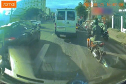 Clip: Xe máy va chạm trượt ngã ngay đầu ô tô ngược chiều
