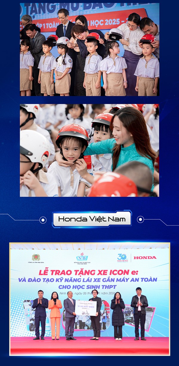 Một trong những dấu ấn đáng chú ý là chương trình trao tặng mũ bảo hiểm cho học sinh lớp 1 trên toàn quốc, đi cùng hoạt động đào tạo dành cho phụ huynh và trẻ em. Với hơn 12 triệu mũ bảo hiểm được trao tặng, hơn 7 triệu trẻ em và phụ huynh được đào tạo về an toàn giao thông, doanh nghiệp góp phần đưa tỷ lệ đội mũ bảo hiểm của trẻ em tăng mạnh so với giai đoạn trước.