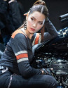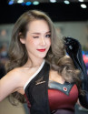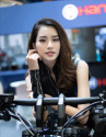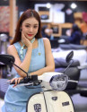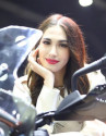 Người đẹp với làn da trắng muốt để lộ vai trần nõn nà và lấp ló cặp tuyết lê căng tràn nhựa sống tạo dáng bên mô tô của Honda.