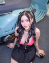 Người đẹp khoe hình thể nóng bỏng bên xe tay ga Vespa đỏ rực rỡ.