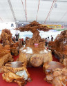 Xuất hiện tại "Hội chợ Đồ gỗ và trang trí nội thất Hà Nội 2020” bộ bàn ghế khổng lồ với những chi tiết chạm khắc tỉ mỉ khiến người xem không khỏi choáng ngợp.